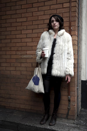 Etudiante en design de mode, elle travaille comme bénévole dans le cadre de l’événement. Elle porte une robe Top Shop et des chaussures vintage.