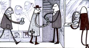 Le détail: un personnage qui bondit de toit en toit dans un silence total.