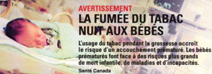 Les fumeurs canadiens étaient déjà habitués aux messages textuels. Dès 1989, une loi fédérale exigeait la présence d’avertissements sur tous les produits du tabac. Mais, comme en Europe, peu de gens se donnaient la peine de les lire. Cette fois-ci le gouvernement s’est arrangé pour que les avertissements ne puissent pas être ignorés.