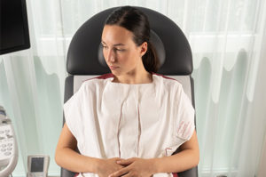 «C’était compliqué parce que je n’avais aucune référence», explique Lirjeta Maxhuni. À l’École cantonale d’art de Lausanne, sa recherche, orientée sur le lien entre les objets et le corps, l’a poussée à imaginer à quoi pourrait ressembler une tenue spécifiquement dédiée à la consultation gynécologique. Après avoir documenté les témoignages des patientes et du personnel soignant à travers des questionnaires quantitatifs, Lirjeta Maxhuni a suivi durant un semestre différents gynécologues afin d’adapter sa tenue, baptisée Gynecare+. «J’ai reçu des retours positifs de la part des patientes et des médecins qui étaient particulièrement ouvert-es à tester le produit.» La tenue comporte des ouvertures situées au niveau de la poitrine et de la région pelvienne. Des aimants discrets permettent de refermer les ouvertures une fois le geste médical effectué. Le prototype actuel est fabriqué en coton 100% bio, une matière utilisée pour les tenues médicales et préconisée par de nombreux gynécologues: hypoallergénique et respirante, elle réduit les risques d’infection. Il est fabriqué en Suisse, à Lugano, par l’entreprise Dresdensia.