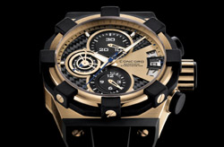 Déclinée en chrono et en grande date, la C1 revendique «une robustesse poussée à l’extrême». Une solidité qui se perçoit par l’aspect massif de l’engin: 16,7 mm d’épaisseur et 44 mm de diamètre. 53 pièces composent la boîte étanche jusqu’à 200 mètres. Le bracelet en caoutchouc vulcarboné noir s’emboîte dans un élément en titane avant d’être rivé au boîtier par deux vis. «C’est une pièce voyante, dans la droite ligne des chronographes d’aujourd’hui, avec une forte personnalité. Nous allons continuer de surprendre l’industrie avec des modèles spectaculaires.»
