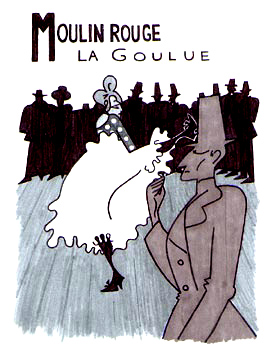 Toulouse-Lautrec, fidèle client et agitateur du Moulin Rouge, a immortalisé les plus célèbres meneuses de revue qu’étaient La Goulue et Jane Avril, surnommée Fil de Soie, dans des affiches qui restituent bien le décor hétéroclite et révolutionnaire crée par Wilette, et surtout l’atmosphère d’ivresse et d’exaltation du cabaret. Toulouse-Lautrec mourra en 1901, à 36 ans, détruit par l’alcool, dont il cachait une fiole jusque dans sa canne.