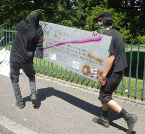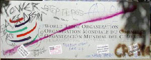 Et si les deux plaques avaient déjà disparu, volées par des égoïstes? Les militants pourraient alors, faute de mieux, tenter d’aller dérober les nouvelles enseignes que l’OMC s’apprête à fixer sur son portail. Mais ce ne sera pas facile. «Ces plaques métalliques rectangulaires coûtent environ 1’500 francs la pièce, explique le service de presse de l’Organisation. En mai, c’était la deuxième fois qu’on nous les volait. Elles seront remplacées, mais nous étudions maintenant la possibilité de les protéger.»