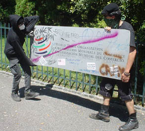 Le mouvement altermondialiste aurait-il trouvé sa flamme olympique? Comme tous les mythes fondateurs, cette affaire commence par un grand acte symbolique. Il survient le vendredi 30 mai à Genève lors d’une manif devant le siège de l’Organisation mondiale du commerce (OMC). Des militants encagoulés dévissent, puis arrachent les deux grandes enseignes métalliques de l’établissement, sous l’oeil placide de quelques policiers coincés derrière un grillage. Cris de joie dans la foule. Cette première prise donne le coup d’envoi d’un week-end spectaculaire qui marquera l’histoire de Genève.