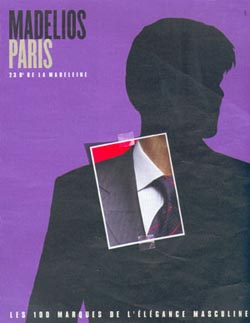 Masculine, une silhouette noire sur fond bleu mauve, se veut la nouvelle carte de visite de Madelios, adresse de confection homme à Paris.