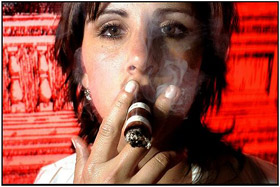 «Le cigare, normalement, ce n’est pas trop pour les gens de notre âge, dit Espérance Mazolo, étudiante, 19 ans, très à l’aise face au photographe. Certaines personnes pourraient trouver ça vulgaire, mais on s’en fiche.» A ses côtés, Selma Kovaci, une assistante pharmacienne de 20 ans, affiche également une assurance royale. «Mais je n’oserais jamais fumer devant mes parents: ils seraient choqués!, dit-elle. Ce qui me plaît dans le cigare, c’est qu’il s’agit d’un objet de puissance. Les femmes qui le fument sont des femmes de pouvoir, très séductrices. J’adore. Je rêverais d’être photographiée en tailleur avec un cigare. Je trouverais ça terriblement sexy.»