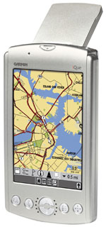 Garmin ne compte pas se laisser manger tout cru. Pour sortir de son marché de niche, les Américains parient sur le mariage de l’«organiseur» et du satellite. Les iQue possèdent une petite antenne plate qui se déplie à l’arrière pour capter le signal. Disponible en version PocketPC (iQue M5) ou Palm OS (iQue 3600), la gamme séduit les habitués du PDA qui y retrouvent toutes les fonctions habituelles d’un organiseur, avec la possibilité d’ajouter les cartes de leur choix ainsi qu’une ribambelle de petits logiciels qui profitent du signal GPS pour donner toutes sortes d’indications sur le trajet parcouru et la route à suivre. Le désavantage vient de la batterie, qui ne résiste pas longtemps à un usage intensif du GPS.