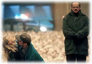 Dès lors, l’enquête policière se transformera imperceptiblement en étude de caractères. Et dans cet excercice, Sean Penn excelle, aidé par un casting extraordinaire qui réunit pour de brefs face à face avec Nicholson Vanessa Redgrave, superbe en grand-mère murée dans sa douleur, Helen Mirren en psychologue qui tendra à Jerry Black le miroir de sa propre folie, Sam Shepard en commissaire affligé par l’obsession maladive de son ex-collègue et surtout un surprenant Mickey Rourke, un peu oublié, quasi méconnaissable et sublime dans le monologue d’un père éploré par la disparition de sa fille.
