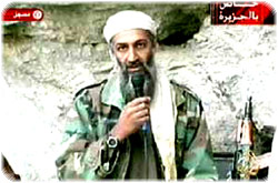 Je somnolais presque au fil de ces plats discours présidentiels quand soudain, l’ennemi s’est dressé devant moi. Oussama Ben Laden, turban solidement noué, tenue de camouflage, montre-bracelet impressionnante de modernité. Mais le visage de Ben Laden! Le ton de sa voix! L’acuité de son regard! La froide détermination de son propos. Pour la première fois il revendique les attentats. Puis il s’engage et donne son programme: «Je jure par Dieu que l’Amérique ne connaîtra jamais plus la sécurité avant que la Palestine ne la connaisse et avant que toutes les armées occidentales athées ne quittent les terres saintes de l’islam!»