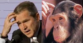 Comment dire? Sans vouloir manquer de respect envers nos cousins primates, on peut relever quelques similitudes entre le faciès de George W. Bush et celui d’un grand singe arboricole. «Même regard intrigué, mêmes oreilles déployées, même arcade sourcilière», s’est dit Rich Sullivan, étudiant à l’Université de Tufts, Massachusetts. Les analogies lui ont paru si frappantes qu’il s’est mis à réunir des pièces à convictions.